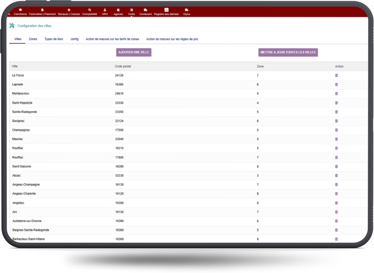 • Définition de tarifs selon la zone ou la ville
